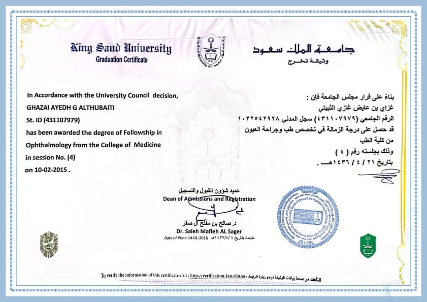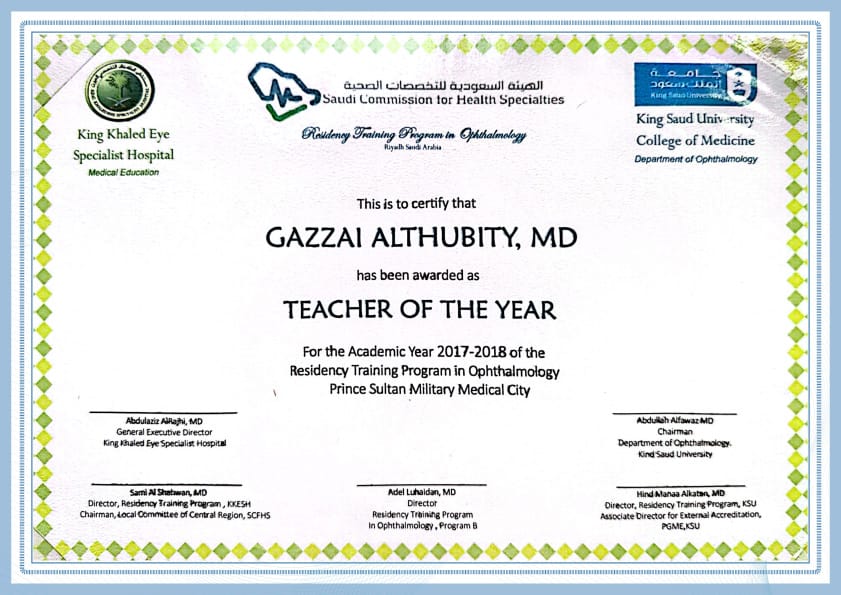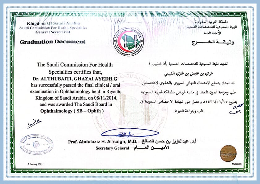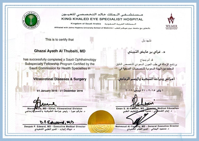 يُعد الدكتور غزاي الثبيتي أحد الأطباء المتخصصين في علاج مشكلات شبكية العين المختلفة، فخبرته تمتد لأكثر من 10 أعوام.